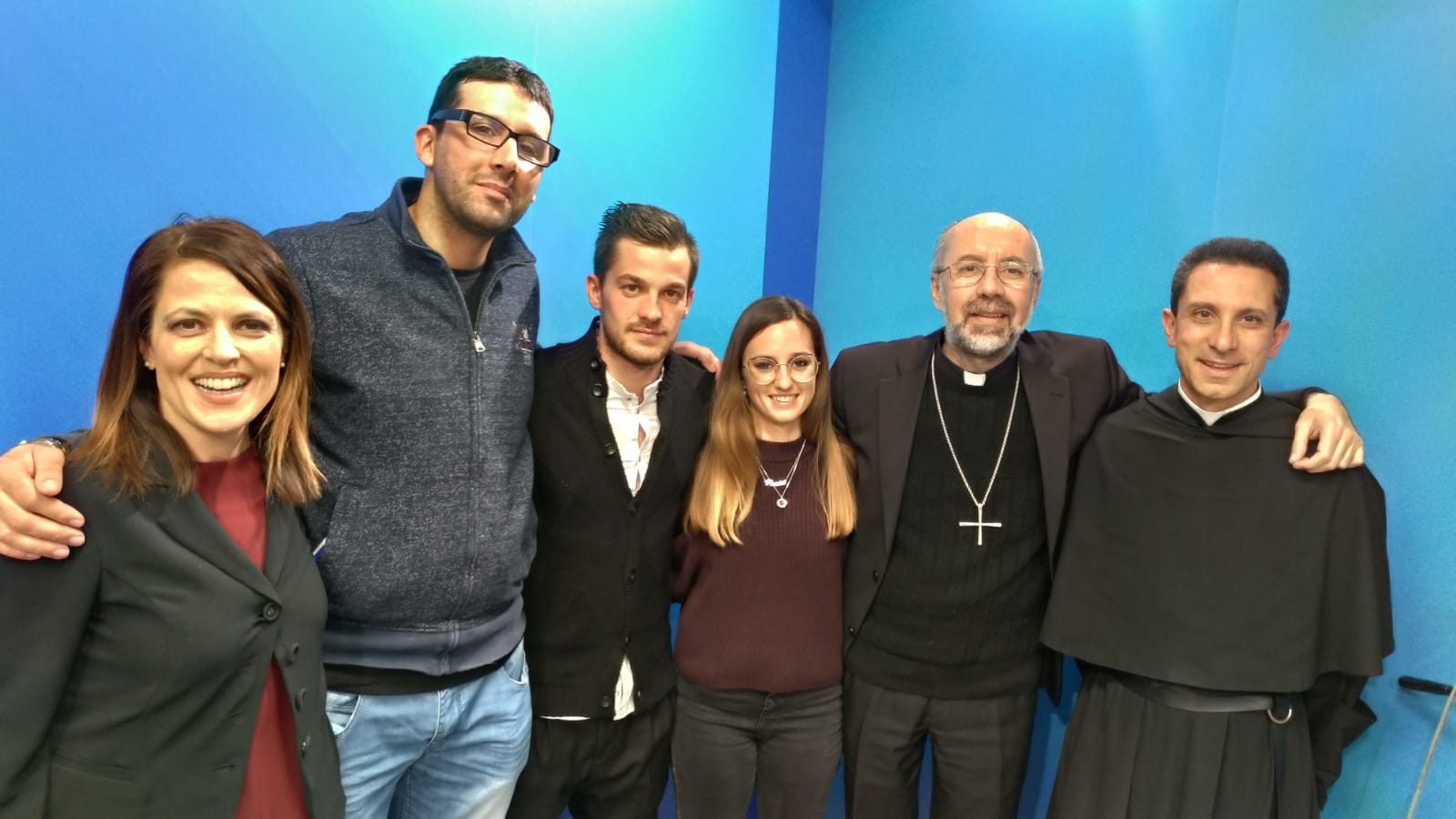 Ospiti in studio: il vescovo di Macerata Nazzareno Marconi, Padre Gabriele Pedicino della comunità Agostiniana di Tolentino, Alessandro Fabrizi di Cingoli, Alessia Freddo e Eros Mangiaterra di Recanati.