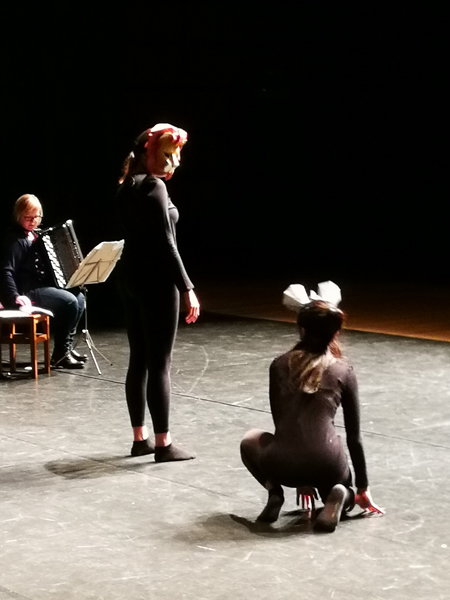 Angelica Nicole Ricca, Elisa Re, Matilde Maracci, Leonardo Sperandini, Simona Lo Bosco e Gaia Giustozzi gli studenti che hanno rappresentato l’opera, accompagnati con la fisarmonica dalla prof Maria Emilia Corbelli.
