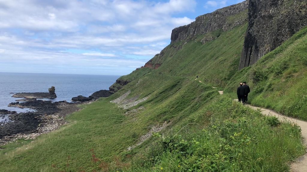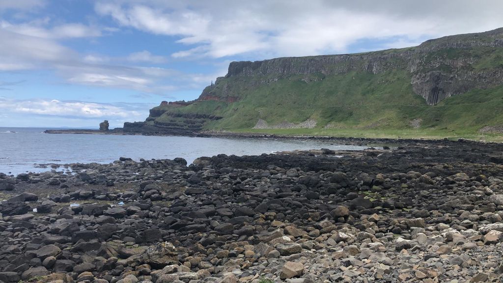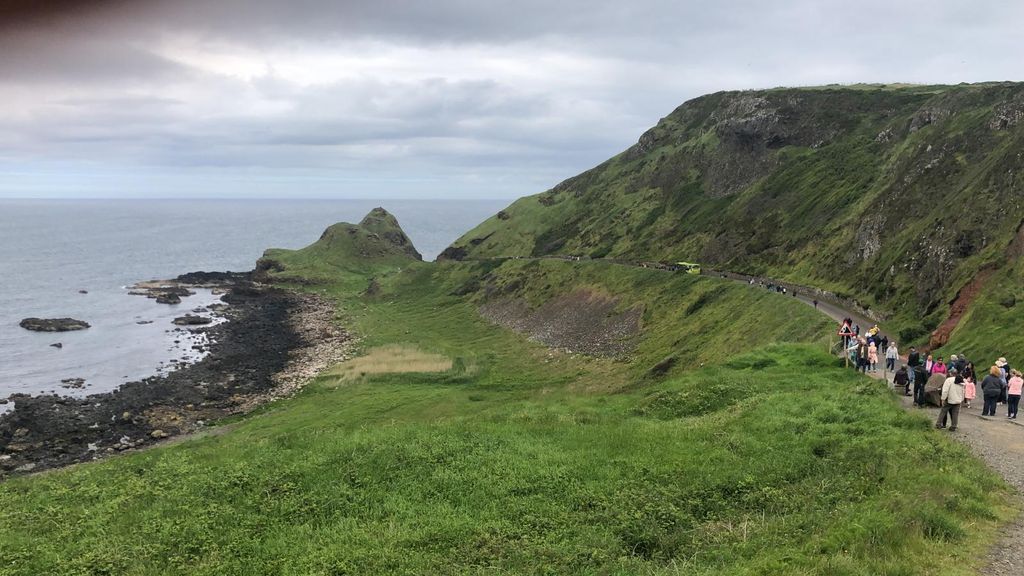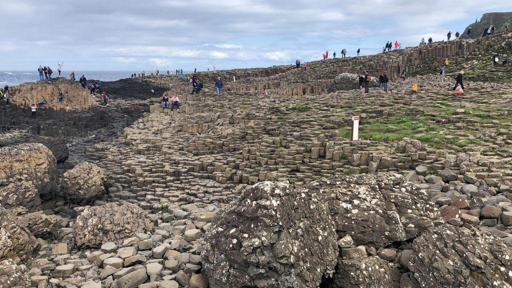 La seconda giornata è iniziata con una visita a un luogo naturale davvero molto bello, situato sulla costa a nord-est, da cui addirittura si vede in lontananza la Scozia. Lo chiamano: il sentiero dei giganti. Tra 20.000 e 50.000 anni fa questa zona era sommersa da un mare particolarmente freddo, da una spaccatura della crosta terrestre salirono improvvisi getti di lava incandescente, che a contatto con l’acqua gelida si