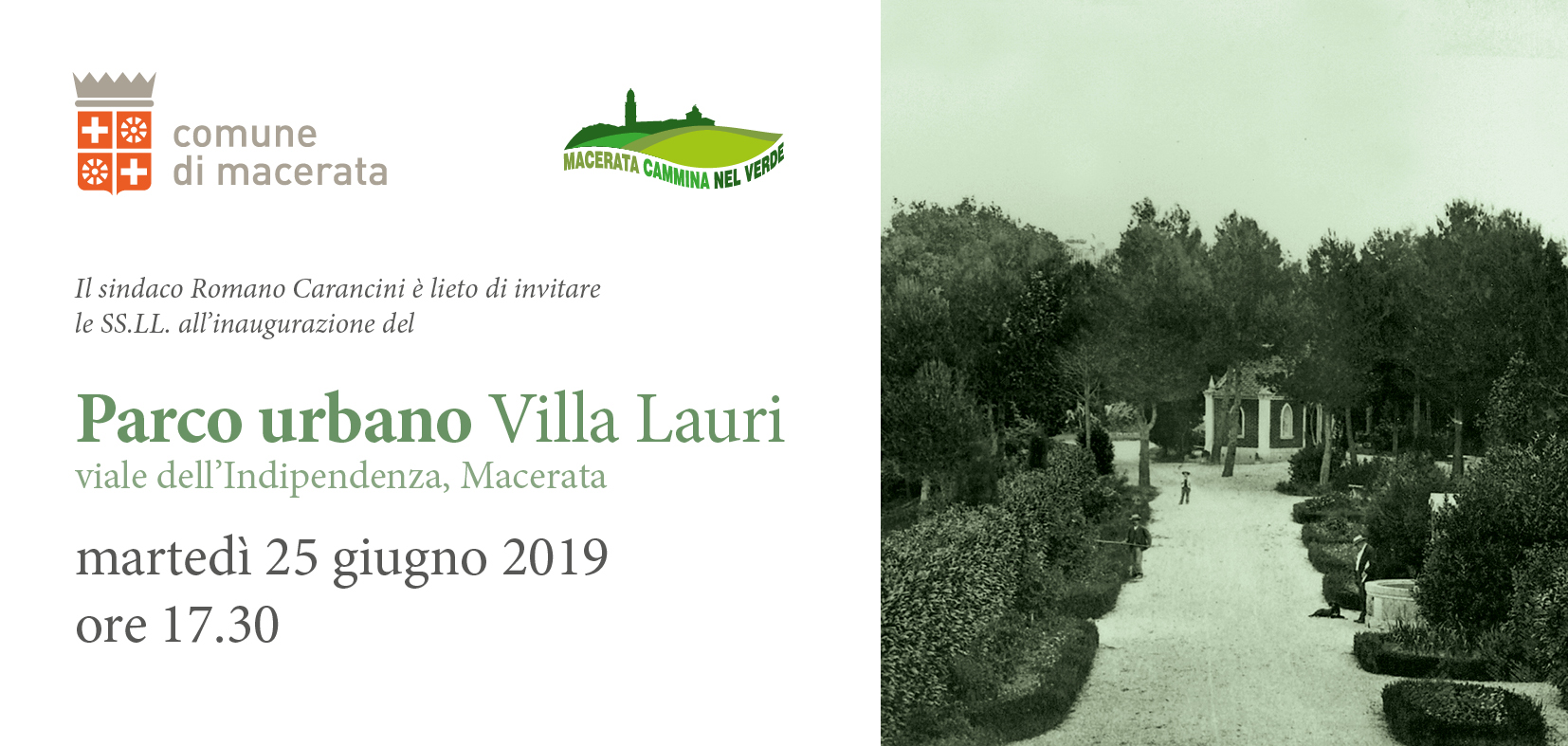 Sarà riaperto, dopo anni di abbandono, il parco di Villa Lauri in viale Indipendenza a Macerata. Martedì 25 giugno, alle ore 17.30, ci sarà una cerimonia e una festa con tutta la cittadinanza, che potrà fruire di questo antico e straordinario polmone di verde all’ingresso della città, nel quartiere Santa Croce.