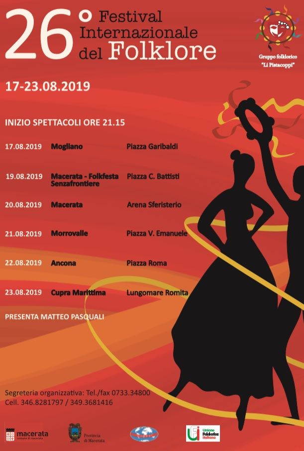 Giunto alla 26^ edizione, il festival è promosso dall’associazione culturale Li Pistacoppi nell’ambito del programma della manifestazioni estive Macerata d’Estate 2019. La città va in scena messo a punto dall’assessorato alla Cultura del Comune di Macerata in collaborazione con le associazioni cittadine. E’ diventato negli anni un appuntamento molto amato dal pubblico, un’occasione per conoscere le tradizioni e i costumi di tante popolazioni lontane, attraverso la loro musica e loro balli tradizionali. Grazie al festival e alla permanenza a Macerata dei gruppi partecipanti, la città vive un’atmosfera internazionale e si assiste a un esempio di integrazione, dialogo interculturale e conoscenza reciproca tra tanti giovani che attraverso il linguaggio universale della musica e della danza stringono legami tra loro, coinvolgendo anche la città in un clima di fratellanza, allegria e spensieratezza