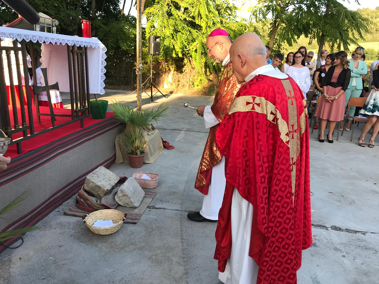 Villa Potenza, il vescovo Marconi ha benedetto la prima pietra del nuovo salone polifunzionale