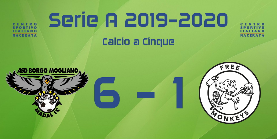 B entornati alla rubrica sportiva dedicata alla Serie A di Calcio a Cinque del Csi Macerata! Il quinto turno del campionato, la scorsa settimana, ha visto disputarsi la partita tra le due formazioni neopromosse di quest’anno, il Borgo Mogliano Madal ed i Free Monkeys di Montefano, giocatasi al Centro Sportivo D. Ferretti di Mogliano. Sono stati proprio i padroni di casa ad uscire vincitori dalla sfida, con un successo maturato tutto nella seconda frazione di gioco.