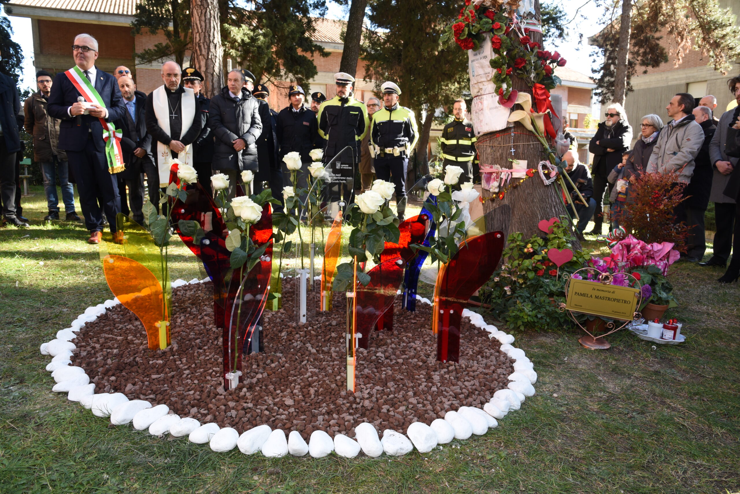 «Il tempo sedimenta la memoria – ha detto il sindaco Romano Carancini -, ed è anche la dimensione giusta per scegliere il segno che la mantenga viva. Oggi in questo giardino e in questa bellissima cornice composta da amministratori, autorità e tanti cittadini, Macerata pone il terzo segno per onorare la memoria di Pamela. Il primo fu il corteo contro tutte le forme di violenza e razzismo che due anni fa attraversò una città attonita. Il secondo, lo scorso anno, con la sua commemorazione in Consiglio comunale. Ed oggi sono questi fiori stilizzati di tutti i colori e una dedica che inneggia alla vita a testimoniare la memoria della città, un segno che invita alla speranza. In questo giardino verranno i bambini, le famiglie, sarà un posto che racconterà la gioia per non cedere alla cultura della morte e della violenza».