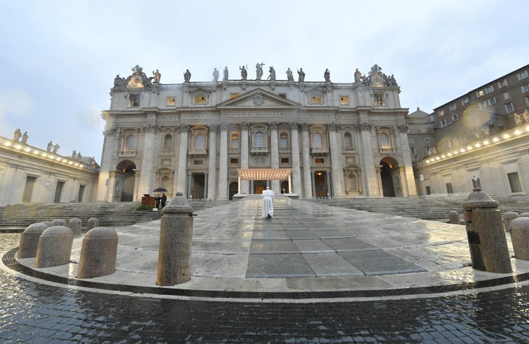 “Signore, benedici il mondo, dona salute ai corpi e conforto ai cuori. Ci chiedi di non avere paura. Ma la nostra fede è debole e siamo timorosi. Tu, Signore, non lasciarci in balia della tempesta. Ripeti ancora: ‘Voi non abbiate paura’. E noi, insieme a Pietro, ‘gettiamo in Te ogni preoccupazione, perché Tu hai cura di noi’”.