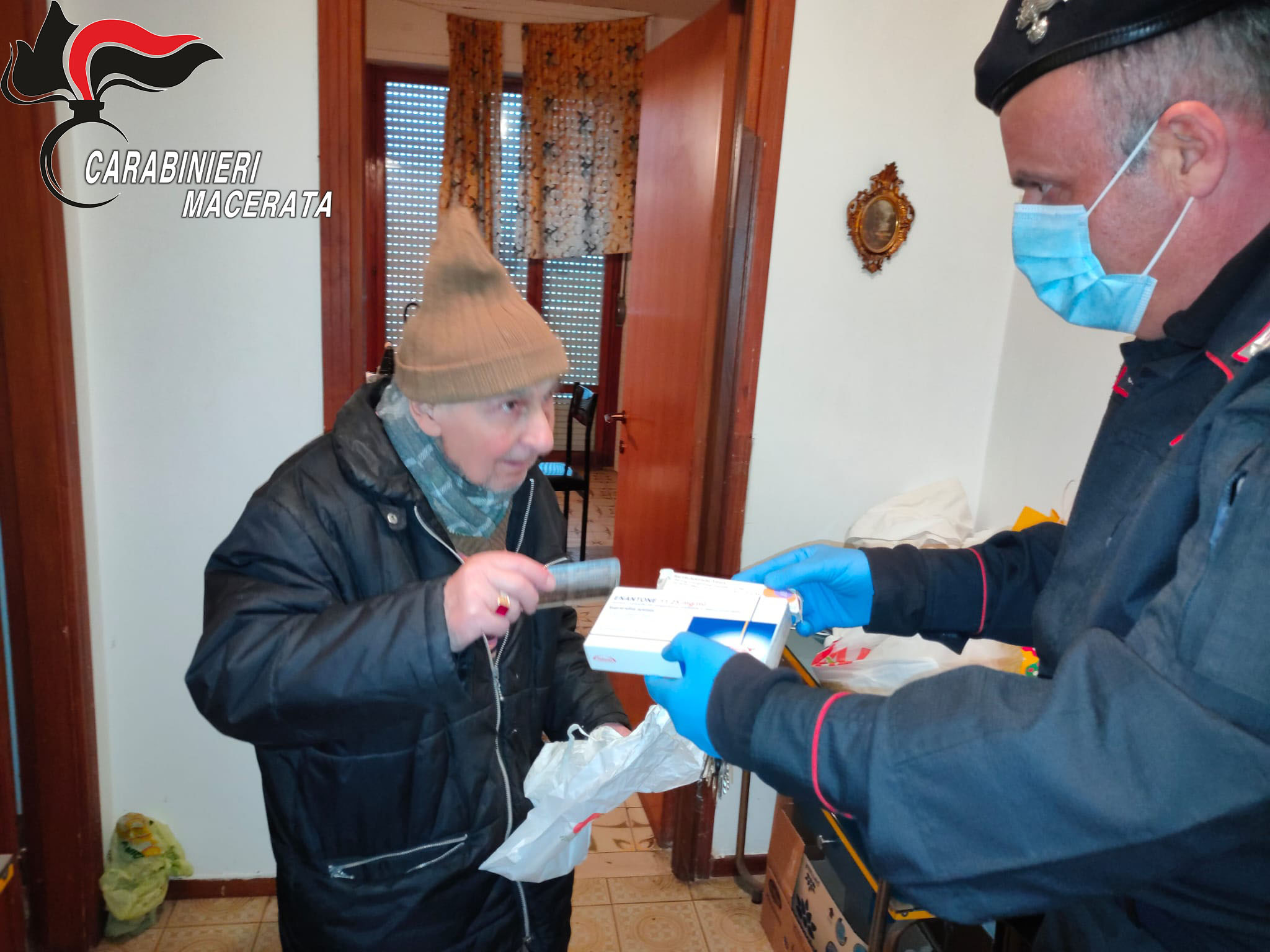 Personale della Stazione Carabinieri di Civitanova Marche, munito di guanti e mascherine, si è subito attivato e ha recapitato le medicine a casa dell’anziano.