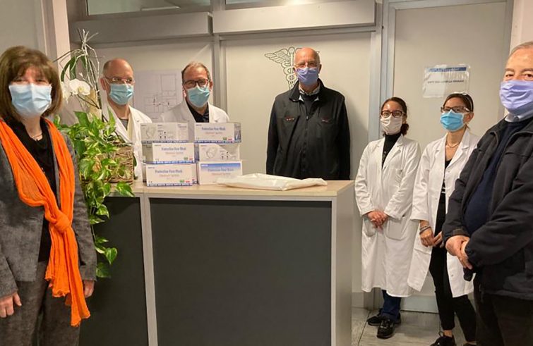Mille camici e trecento mascherine Ffp2 sono state donate ai medici e agli infermieri dell’ospedale “Santissima Trinità” di Borgomanero (No). A consegnarle Mario Metti, presidente dell’associazione Mamre, e il salesiano don Giuliano Palizzi nell’ambito del progetto “Diamoci da fare” promosso dalla stessa associazione e dalla comunità salesiana di Borgomanero. A ricevere il materiale sanitario la direttrice generale dell’Asl Novara, Arabella Fontana, la direttrice del “Santissima Trinità”, Elisabetta Alliata, il primario di Nefrologia e direttore del dipartimento di emergenza e accettazione, Stefano Cusinato, il primario di Anestesia e rianimazione, Davide Colombo, oltre a Cristina Rossi del servizio farmaceutico e al responsabile del servizio di prevenzione, Andrea Bertaccini.
