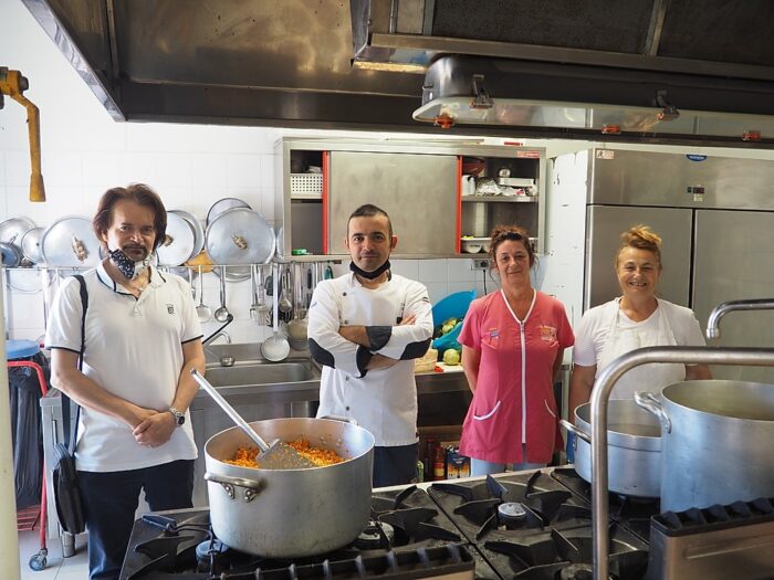 Non solo donare cibo per i più poveri ma anche cucinare per loro: è questo il progetto messo in piedi dall’istituto alberghiero Orio Vergani–Navarra di Ferrara e dalla Caritas di Ferrara-Comacchio. Una “due giorni” solidale nella Mensa di via Brasavola, 9, a Ferrara: “Si tratta del primo progetto Caritas-Vergani – spiega l’operatrice Maria Teresa Stampi -, ma l’idea è di riprenderlo in vista del prossimo anno scolastico, portando ai fornelli insieme ai docenti anche gli studenti delle classi quarte e quinte”. La mattina di ieri e oggi, 24 e 25 giugno, Liborio Trotta, chef, professore e direttore dell’ufficio tecnico, Marzia Perinati, collaboratrice scolastica, e Francesca Falzoni, assistente tecnico dell’istituto alberghiero, dalle 9 alle 14, sono impegnati a cucinare per le persone che in questo periodo si rivolgono alla Mensa aperta dalle 12.30 alle 13.45. Insieme con loro c’è Naima, ragazza di origini somale residente ad Argenta, dallo scorso novembre volontaria per il Servizio Civile regionale. Dalla fine del lockdown, sono circa 34 le persone che usufruiscono della Mensa a colazione e un centinaio a pranzo: fino ad aprile in tutto erano 50 in meno.