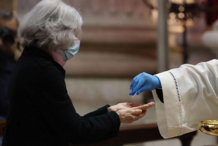 Cade l’obbligo dei guanti per il sacerdote al momento della distribuzione della Comunione ai fedeli. Gli sposi non dovranno più indossare la mascherina durante la celebrazione del loro matrimonio. Lo precisa una nota del ministero dell’Interno in risposta ai due quesiti posti lo scorso 17 giugno dalla segreteria generale della Cei che al riguardo chiedeva deroghe a quanto stabilito in precedenza. Nello specifico, si legge nella nota diffusa ieri sera, “sulla base degli attuali indici epidemiologici”, il Comitato tecnico scientifico (Cts), “in riferimento alla possibilità di derogare all’obbligo dell’uso dei guanti dell’officiante al momento della distribuzione della Comunione”, raccomanda che chi distribuisce la Comunione “proceda a una scrupolosa detersione delle proprie mani con soluzioni idroalcoliche” e che le ostie siano “depositate nelle mani dei fedeli evitando qualsiasi contatto tra le mani dell’officiante e quelle dei fedeli medesimi. In caso di contatto dovrà essere ripetuta la procedura di detersione delle mani dell’officiante rima di riprendere la distribuzione della Comunione”. Per quanto riguarda i matrimoni, il Cts osserva che “non potendo certamente essere considerati estranei tra loro, i coniugi possano evitare di indossare le mascherine”. “Deroga” che può essere estesa anche alle celebrazioni “del matrimonio secondo il rito civile o secondo le liturgie delle altre confessioni religiose”. Rimane invece la raccomandazione che l’officiante usi “il dispositivo di protezione delle vie respiratorie e rispetti il distanziamento fisico di almeno un metro”.