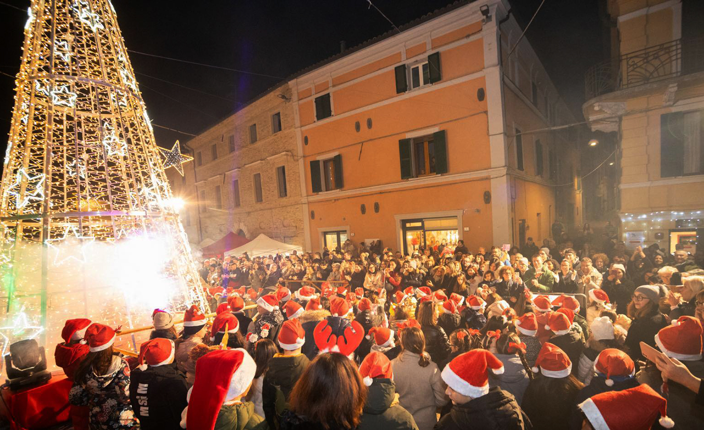 Appignano, il suggestivo borgo maceratese a forma di cuore, conosciuto in tutta Italia per la sua antica tradizione ceramica e per i rinomati legumi, ha dato ufficialmente il via alle festività natalizie con l’accensione delle luminarie e del grande albero in Piazza Umberto I. Il centro medievale si è così trasformato in un caleidoscopio di luci, colori e profumi, regalando a cittadini e visitatori un’atmosfera calda e coinvolgente.
