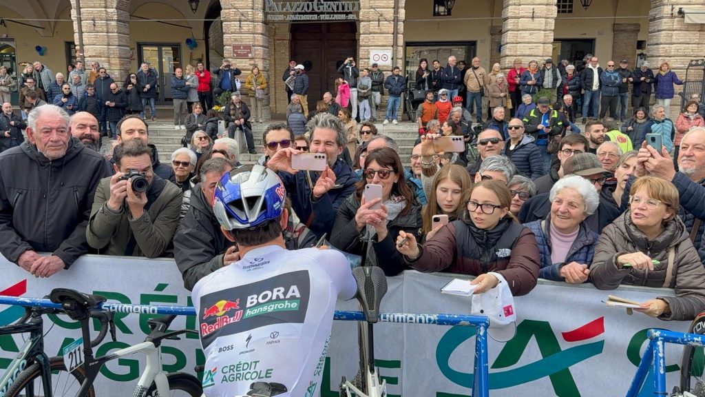 La sesta tappa della Tirreno-Adriatico si è trasformata così in un lungo abbraccio collettivo: dalla partenza a San Severino fino all’arrivo in Piazza Cavour a Camerino, con migliaia di persone lungo il percorso per sostenere il talento marchigiano.