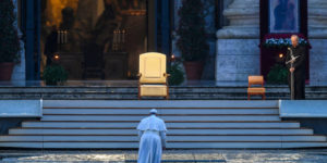 di Lucio Brunelli Mentre il Papa sale da solo, a piedi, le gradinate di marmo della basilica una notifica sul cellulare riporta, gelida, il numero dei morti delle ultime ventiquattr’ore, altre 969 vite strappate all’affetto dei loro cari, il numero più alto dall’inizio dell’epidemia. Il cielo è fosco, la pioggia sferza l’abito bianco di Francesco, […]