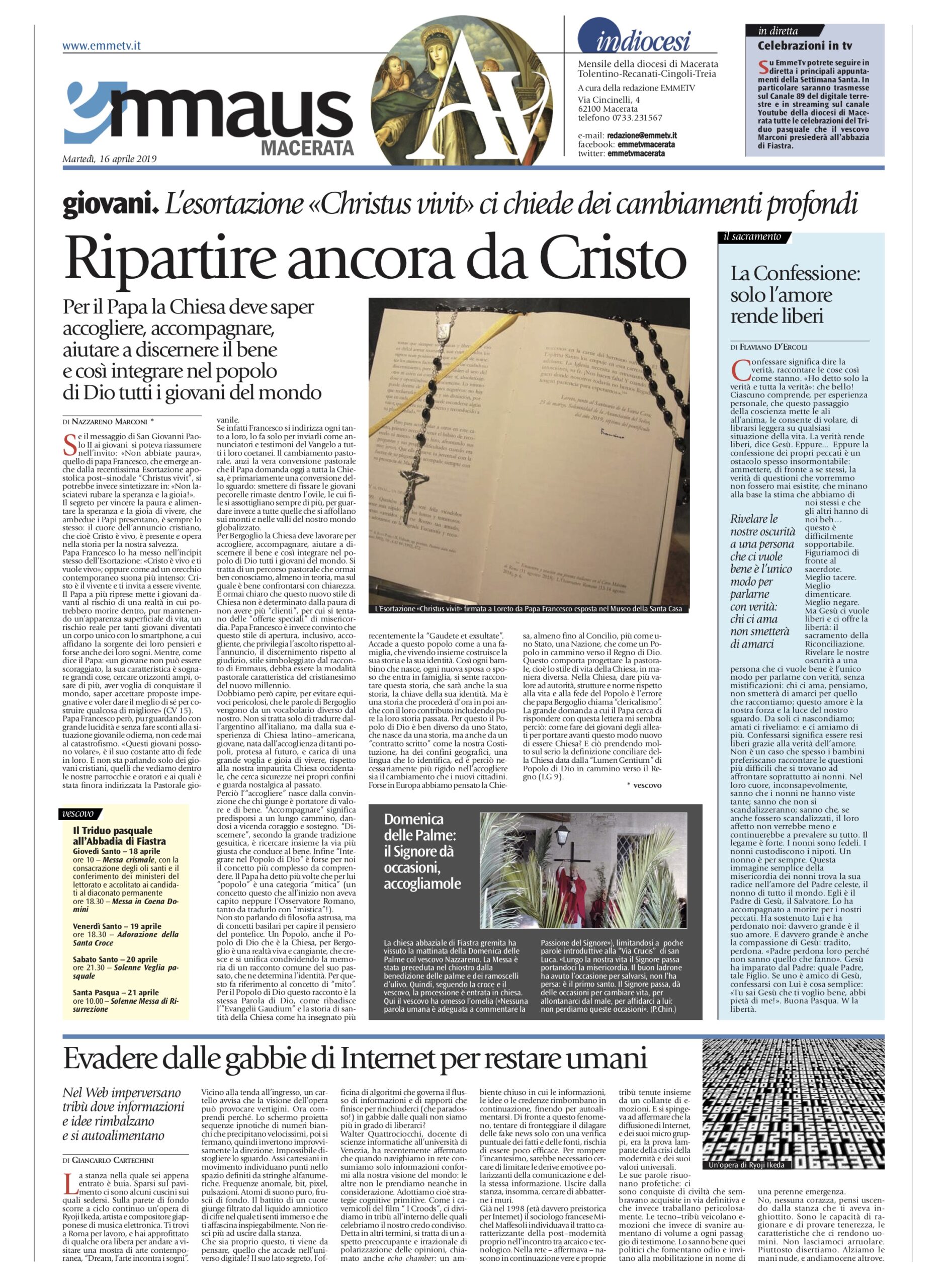 21 Aprile 2020 Emmaus e Avvenire. Martedì 21 aprile 2020 https://issuu.com/emmausonline/docs/diocesane_marche_macerata_20200421…