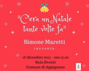 Un fine settimana dedicato ai racconti di Natale con Simone Maretti. Si inizia sabato 16 dicembre alle ore 17; il primo pomeriggio è intitolato «C’era un Natale tante volte fa», ad Appignano, a cura del Comune e dell’Associazione Prometeo  e si svolgerà presso la Sala Eventi del Comune. Domenica 17 dicembre alle 17.30, invece, Simone Maretti […]