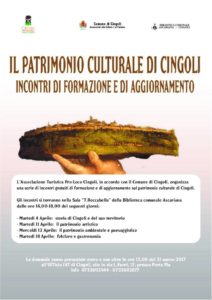 L‘associazione turistica Pro-Loco Cingoli, in collaborazione con il Comune di Cingoli, Assessorati alla Cultura e al Turismo, promuove un corso gratuito di formazione e aggiornamento per guida ai luoghi di interesse culturale di Cingoli. Il corso, che si articolerà in 4 lezioni (nei giorni 4, 10, 11 e 18 aprile 2017) per un totale di 10 ore, verterà […]