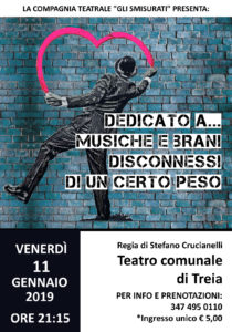 La compagnia teatrale “Gli Smisurati” porta ancora una volta sul palco del Teatro Comunale di Treia la voglia di sperimentazione che la contraddistingue. “Dedicato a… Musiche e brani disconnessi di un certo peso” è lo spettacolo che andrà in scena venerdì 11 gennaio, a partire dalle 21.15, ideato al fine di promuovere la seconda edizione […]