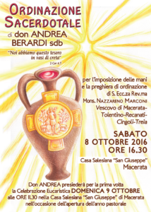«Noi però abbiamo questo tesoro in vasi di creta, affinché appaia che questa straordinaria potenza appartiene a Dio, e non viene da noi»; si “odorava” davvero questa grande potenza dall’involucro fragile, sabato pomeriggio nella Casa salesiana di Macerata nel seguire l’Ordinazione sacerdotale di don Andrea Berardi (leggi qui l’intervista), sostenuto e accompagnato dal Vescovo, dall’ispettore della circoscrizione […]