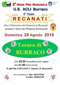 Si è conclusa col successo della coppia formata da Adrio Maraschio e Stefano Cesini la sesta tappa del Gran prix regionale di burraco dell’Unione Sportiva Acli Marche che si è svolta presso l’atrio del Palazzo comunale di Recanati. Nella graduatoria finale Maraschio e Cesini hanno concluso al primo posti con 61 punti contro i 54 punti […]