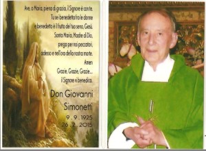 Lamberto Pigini Don Giovanni Simonetti è entrato nella Casa del Padre il 26 febbraio 2015, lasciando veramente un vuoto incolmabile in tante persone che lo ricordano sempre con affetto e lo rimpiangono. Tutta la sua vita, fin dai tempi della scuola media, è stata un continuo esempio di fede e di spirito di sacrificio: era, tra […]