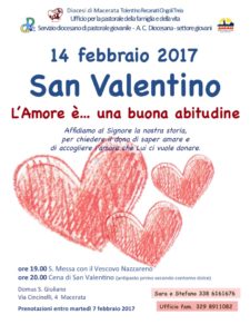 «L’Amore è… una buona abitudine». Su questo titolo si svolgerà il San Valentino “alternativo” e originale promosso dall’Ufficio per la Pastorale della famiglia e della vita, dal Servizio per la Pastorale giovanile assieme all’Azione cattolica, settore giovani. L’appuntamento, in programma per martedì 14 febbraio, prevede alle ore 19 la Santa Messa con il vescovo Nazzareno Marconi […]